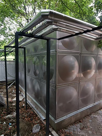 附带为客户制作了530吨的不锈钢消防水箱,选用3.0厚度的不锈钢板材,内部五爪拉筋,坚实牢固,外形美观。